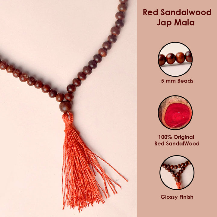 Certified 5mm 100% Original Authentic Pure Red Sandalwood Jap Mala (Andhra Pradesh)