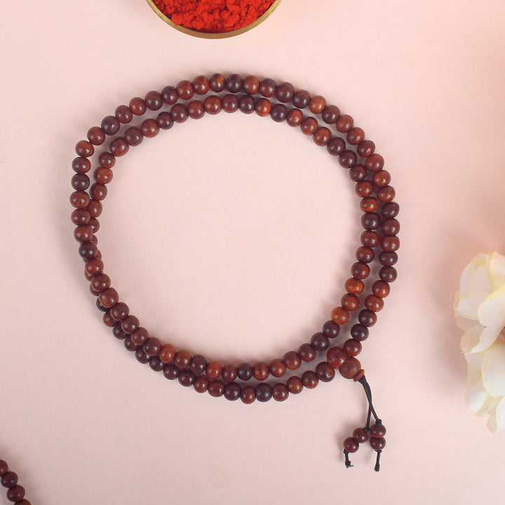 Red Sandalwood Jap Mala | Chandan Mala for Meditation | Natural Red Sandalwood Rosary | Handmade Chandan Beads Mala | Sandalwood Mala for Prayer | Mala for Hanuman Mantra |