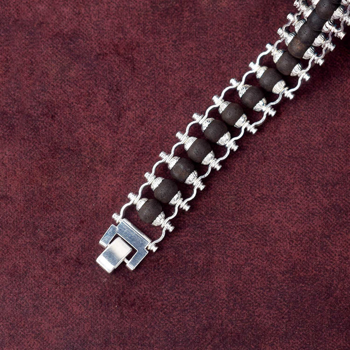 Silver Plated Karungali Bracelet | Ebony Wood Bracelet | Karungali Bracelet for Shani | PVD Coated Spiritual Bracelet | Stylish Karungali Wristwear | Protective Ebony Bracelet | Saturn Remedy Bracelet | Energized Karungali Bracelet | Unisex Spiritual Jewelry | Karungali Bracelet for Men and Women