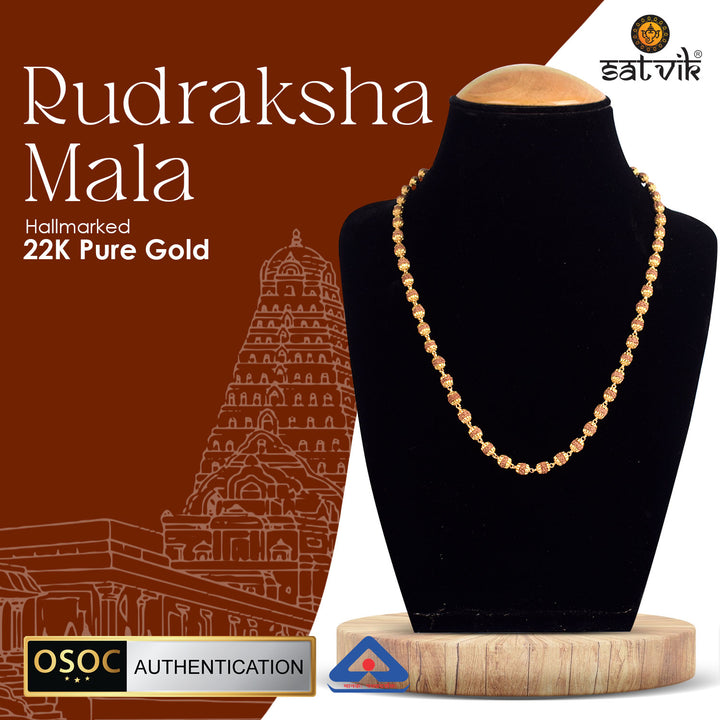 Hallmarked 22K Pure Gold Panchmukhi Rudraksha Mala