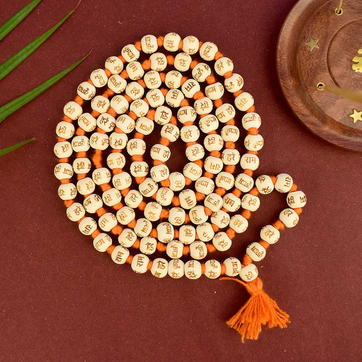 Use it during Bhakti Yoga, Japa sessions, or spiritual gatherings to deepen your connection with the divine. The white wooden beads symbolize purity and calm, making this mala an excellent choice for inner peace and devotion. Can also be worn as a spiritual accessory or kept on your altar.