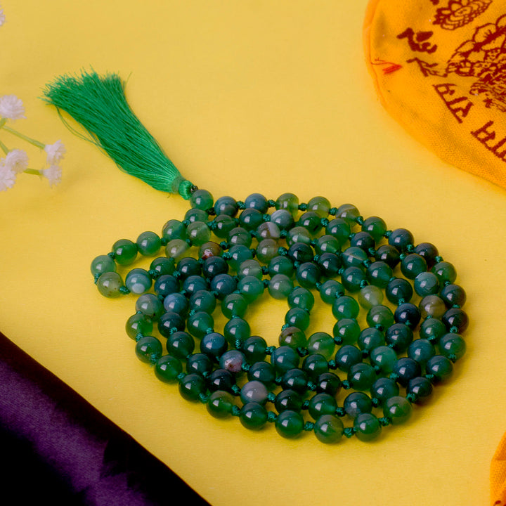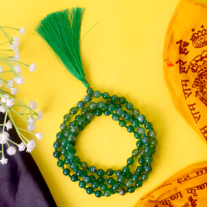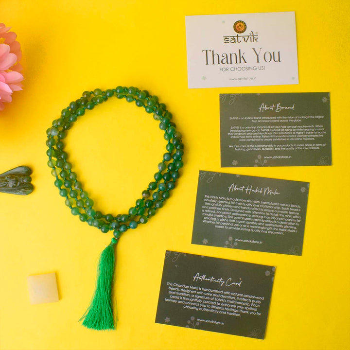 Premium Hakik Jap Mala | Green Aventurine Jap Mala | Spiritual Healing Mala | Meditation Beads for Chanting | Green Aventurine Benefits | Lucky Stone Mala |