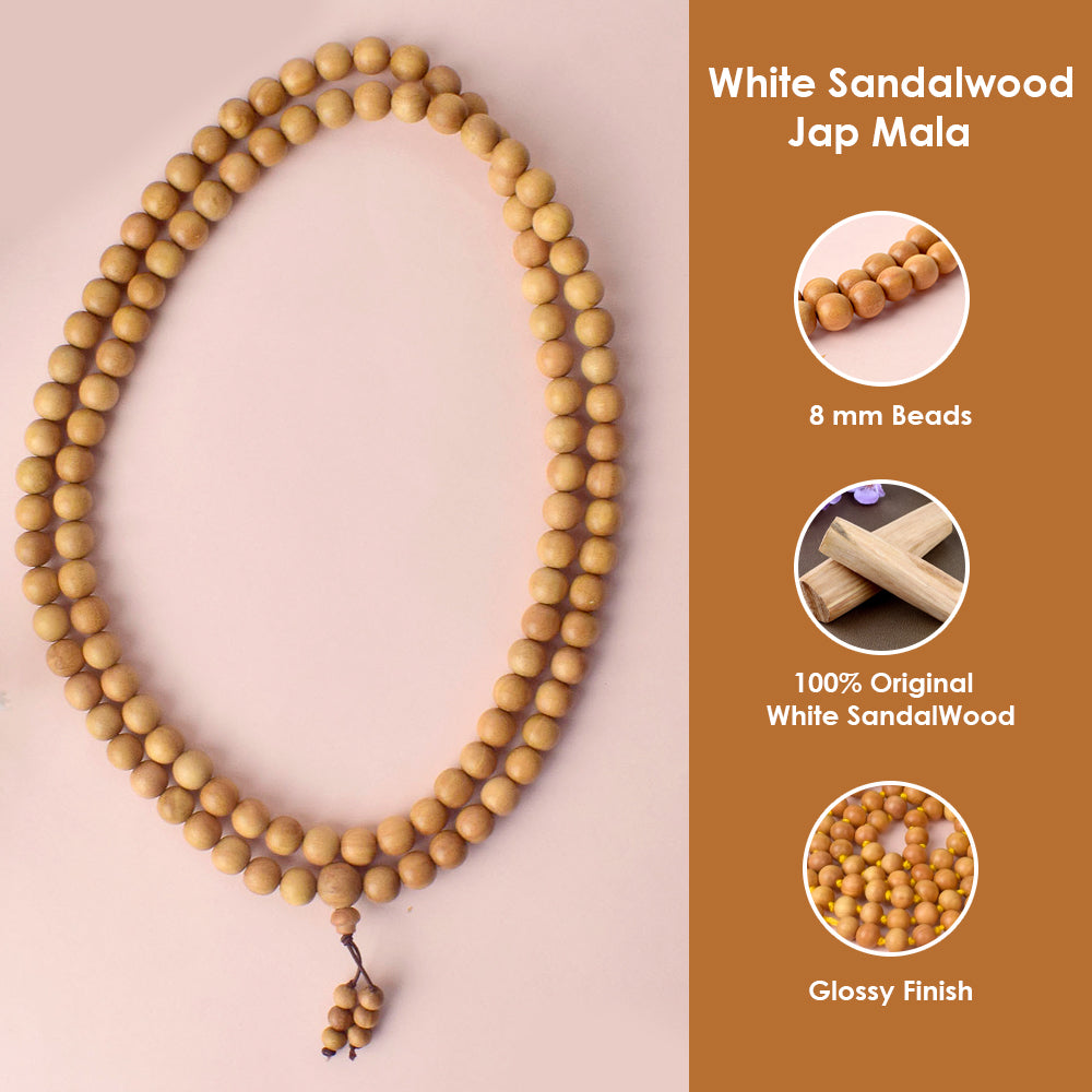 White Sandalwood Jap Mala | Original White Sandalwood Mala | Mala for Vishnu and Lakshmi Jaap | Pure Chandan Mala for Puja | Natural White Sandalwood Prayer Beads |