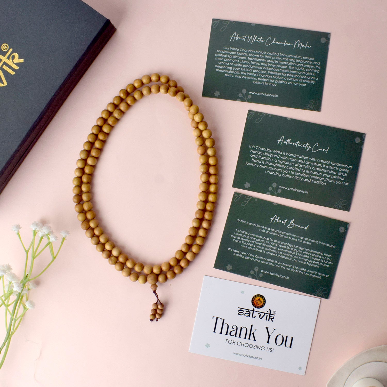 100% Original White Sandalwood (Chandan) Jap Mala | Satvikstore.in – satvikstore.in