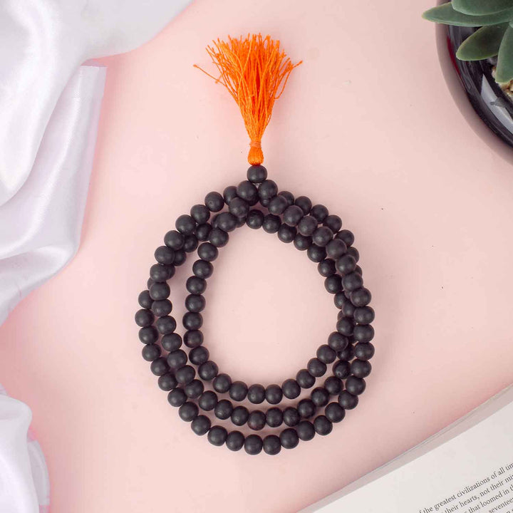 Ebony Gloss Mala | Ebony Mala 108 Beads | Glossy Ebony Wood Japa Mala | Shiva Mala | Energized Ebony Mala | Meditation Mala | Chanting Bead Mala | Black Wood Glossy Mala | Spiritual Protection Mala | Ebony Rosary | Gloss Finish Japa Mala