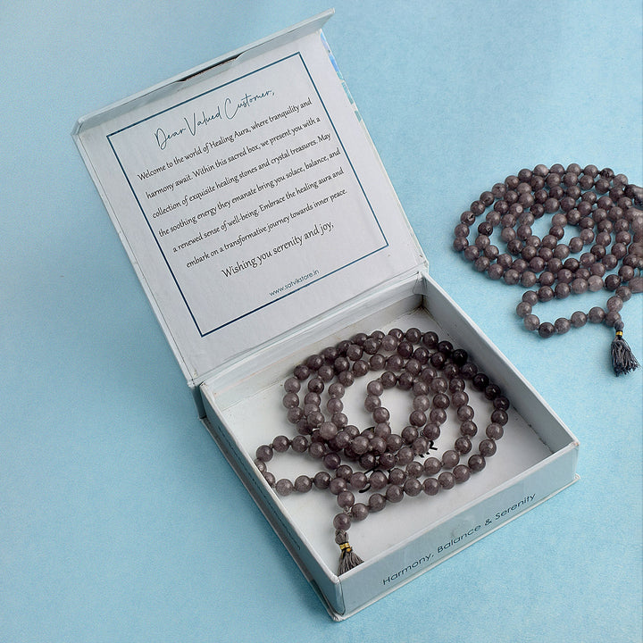 Grey Hakik Jap Mala for Emotional Balance & Protection | Grey Agate Mala for Wisdom & Spiritual Healing | Spiritual Jap Mala for Stability & Mental Clarity | Meditation Beads for Focus & Grounding | Healing Mala for Positive Energy & Protection |