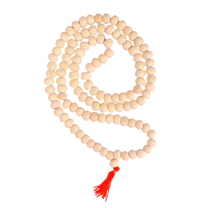 White Wooden Jap Mala | Sacred Jap Mala for Puja | 108 Beads Meditation Mala | Natural Wood Chanting Mala | White Beads Hindu Prayer Mala | Pure Wood Jap Mala |Jap Mala for Daily Worship |
