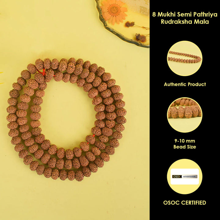 8 mukhi semi pathriya rudraksha mala 9-10mm