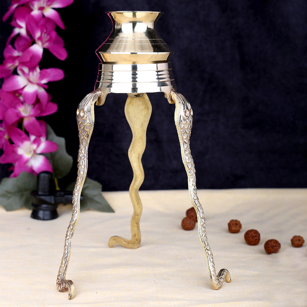 The sturdy and traditional design ensures stability during daily pooja and special ceremonies. Brass is considered auspicious in Hindu worship, known for its durability and spiritual purity, making this stand ideal for long-term devotional use. It is perfectly suited for home temples, pooja rooms, and religious ceremonies, especially during Maha Shivratri and other Shiva-related rituals.