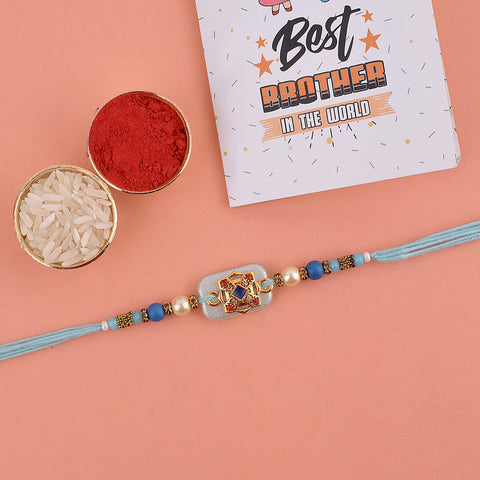 Stone Rakhi: Elevate the festivities with our stone rakhi collection, featuring mesmerizing stones that add a touch of grace and splendor. These rakhis symbolize the strength and resilience of your sibling relationship.