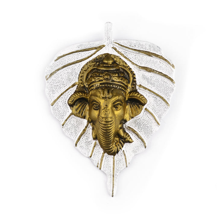 Buy Lord Ganesh Face on Leaf Patta Wall Hanging White | Satvikstore.in – satvikstore.in