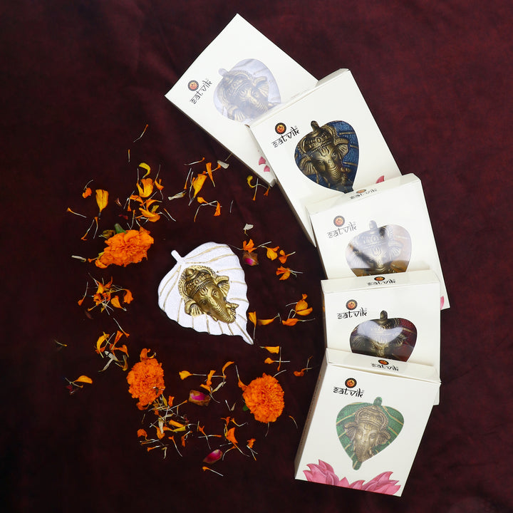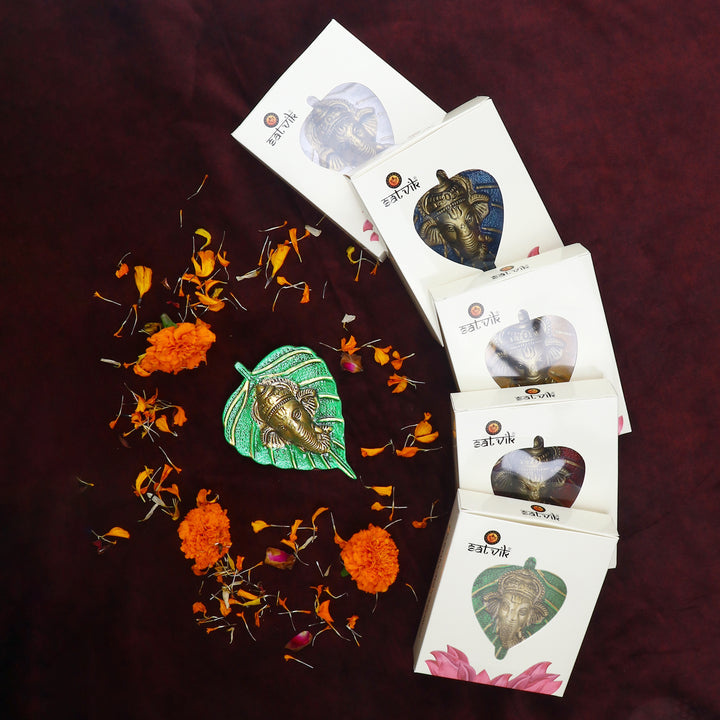 • Package Contains 1 Pc Designer Lord Ganesh Face on Leaf Statue Available in 5 Different Shades. Each Comes with Premium Gift Packing.