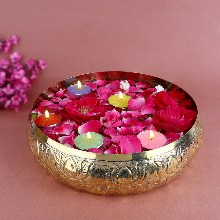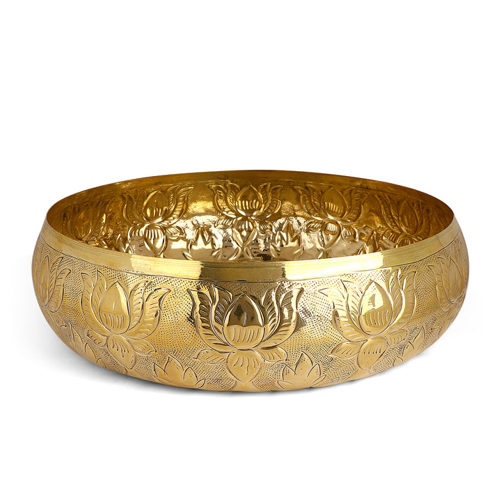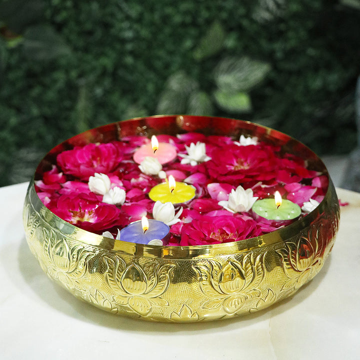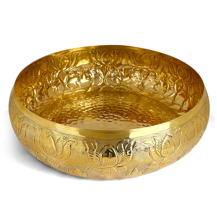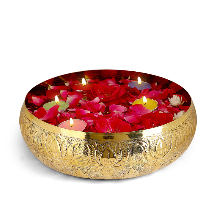 Decorative Brass Floral Pattern Embossed Urli | Home Decor Product – satvikstore.in