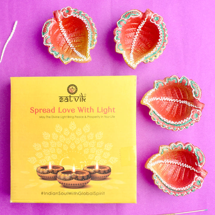 Item Name: Leaf Design Celebrating Diwali with Clay Diyas Set of 4