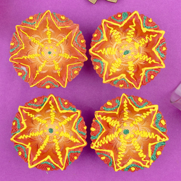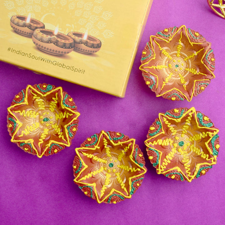 Glow of Tradition Handcrafted Clay Diyas Set of 4