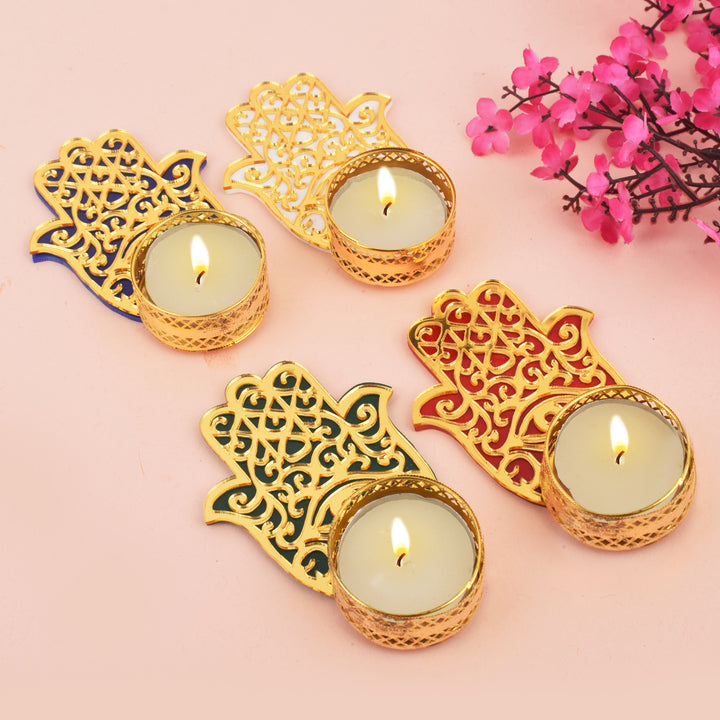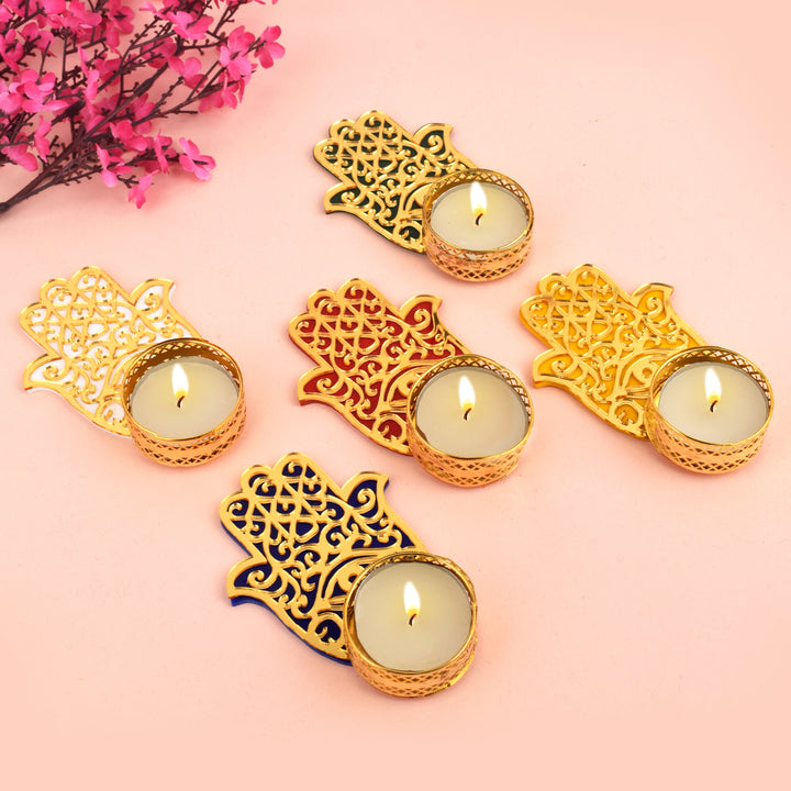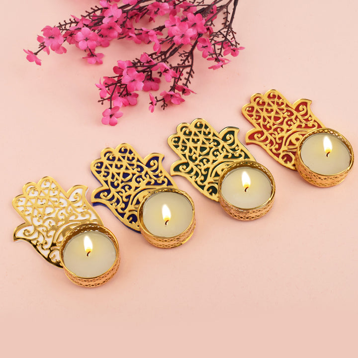 Hamsa Hand Evil Eye Tea Light Candle Holder with Tealight (Small) – satvikstore.in