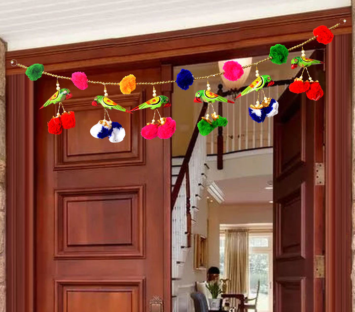 Jaipuri Parrot Puppets Pom Pom Toran Bandhanwar For Entrance Door
