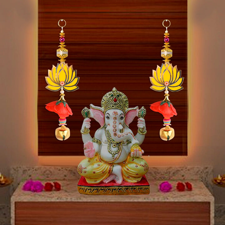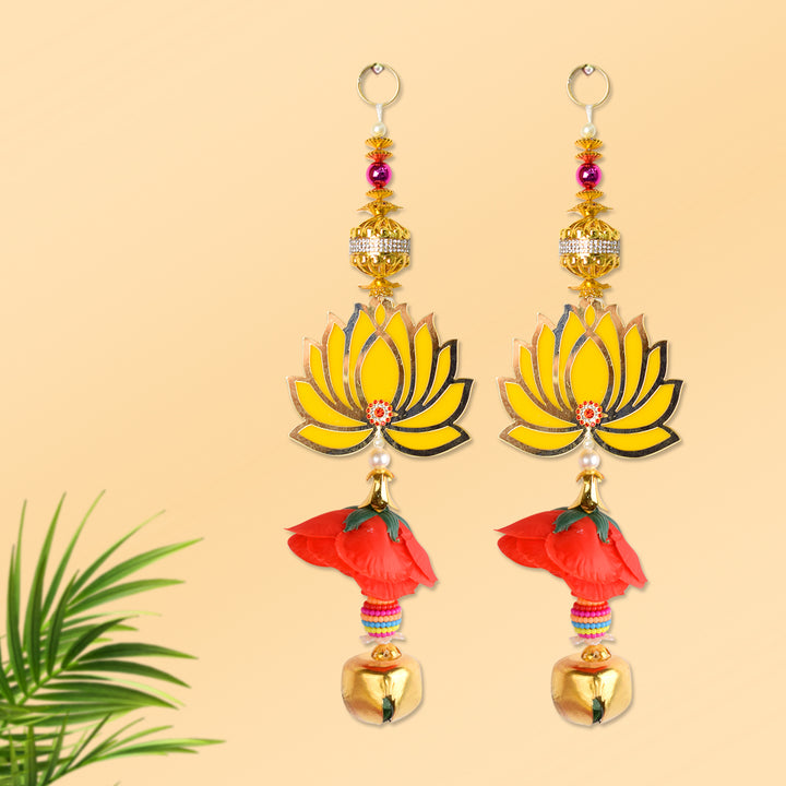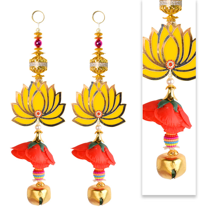 Add a graceful and spiritual touch to your home with this Lotus Flower with Bell Side Door Wall Hanging. Designed with beautiful lotus motifs and a delicate golden bell, this pair brings peace, positivity, and traditional beauty to any space.