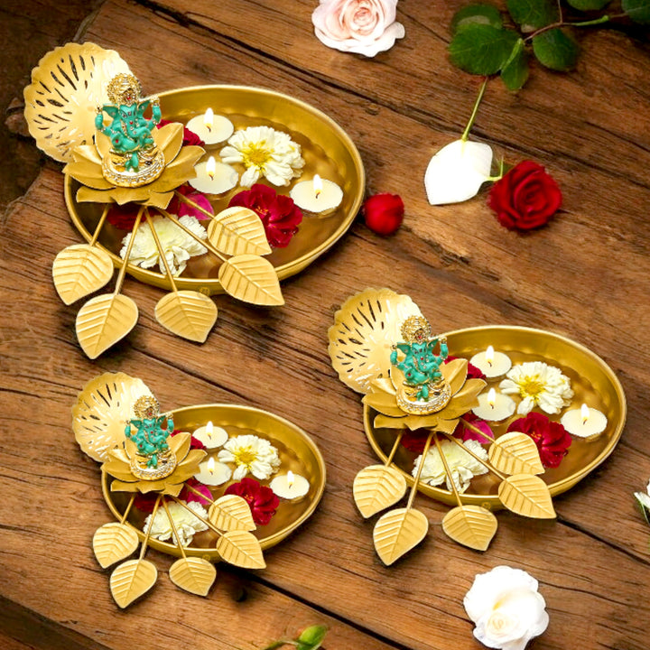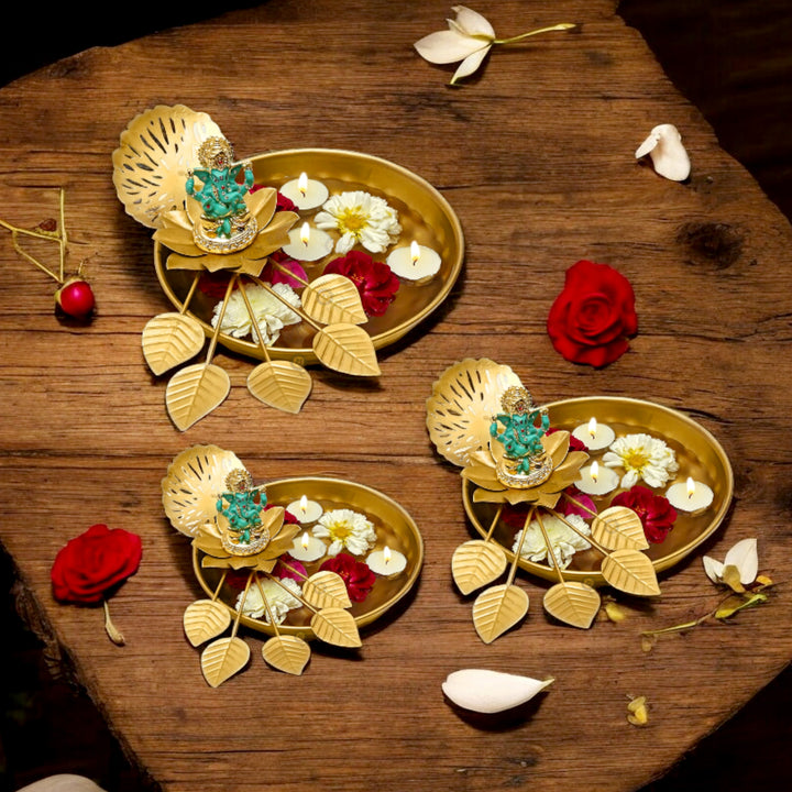 Eden Floral Metal Lotus Leaf Designer Urli 3 Pc Set