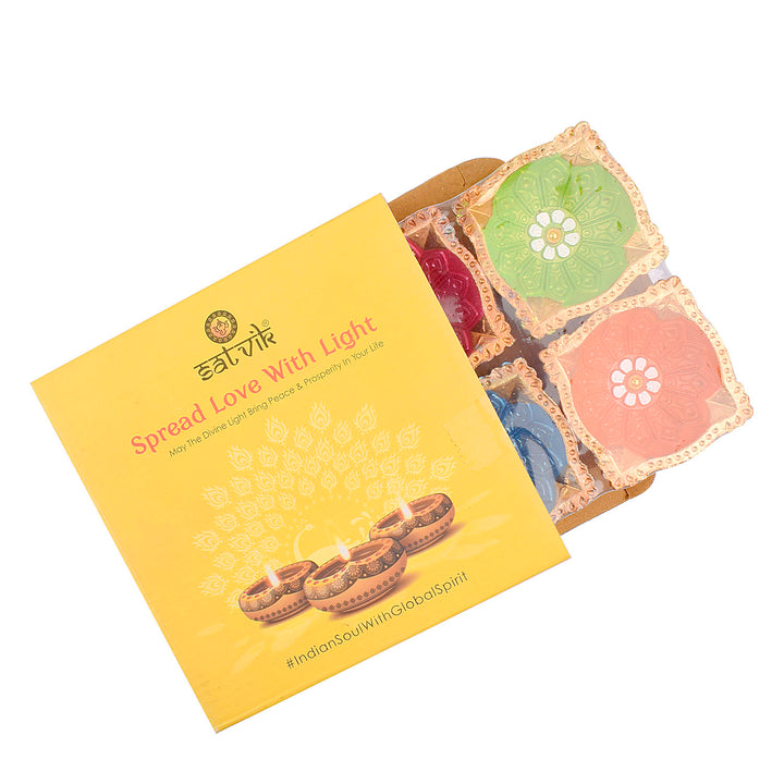 For those who appreciate the simplicity of tealights and candles, SatvikStore.in offers an array of options, each exuding a unique charm. Decorating your home becomes a spiritual journey with Laxmi Charan and Swastik stickers, ensuring that auspiciousness permeates every corner.
