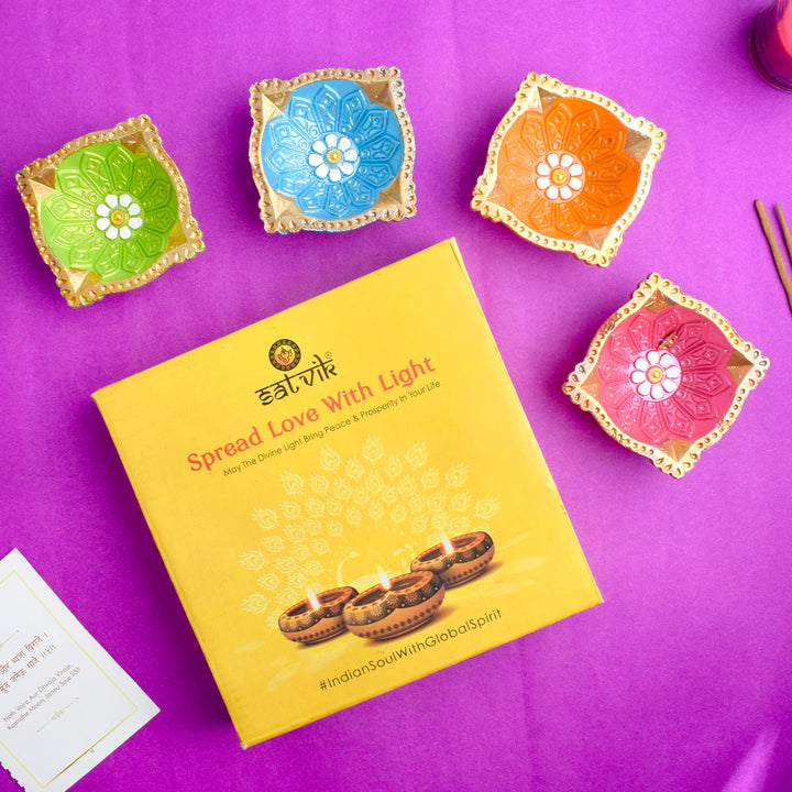 Item Nam: Radiant Clay Diyas Illuminating Diwali with Tradition and Artistry Set of 4