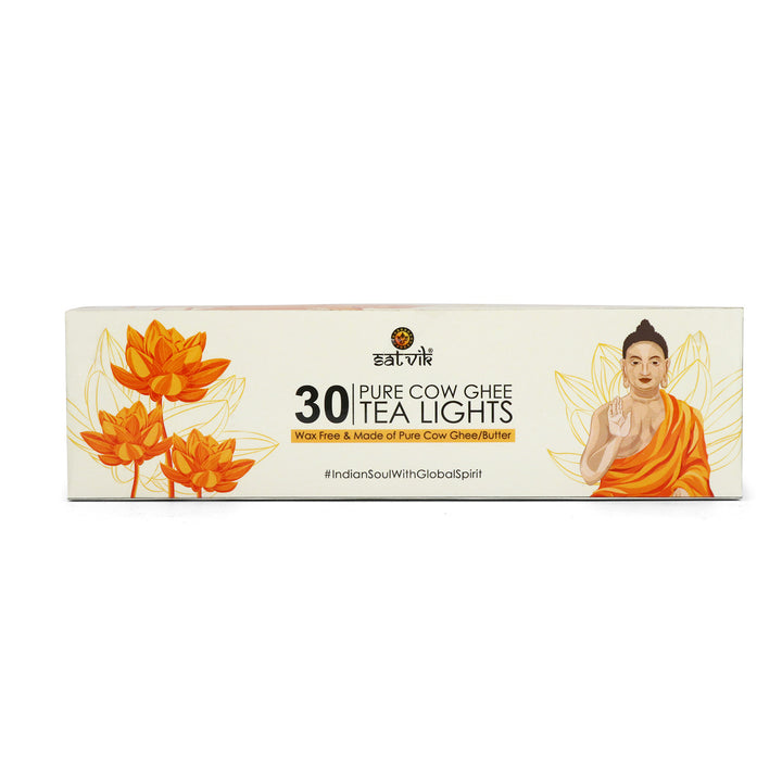 About Product: Satvik Presents Tibetan Buddhist Butter/ Pure Cow Ghee Tea Light Pack of 30 Filled with Tibetan Buddhist Butter Lamp, 1.5 Hours Burning Time (Pack of 1)