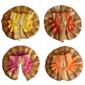 dotted laddu gopal dress | golden border krishna poshak | pink yellow red orange gopal dress | playful deity attire | vibrant laddu gopal clothes | festive pooja outfit | traditional bal gopal vastra | krishna ji dress online | dotted kanha ji dress | divine laddu gopal poshak | satvikstore.in