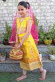 Buy Online | Yellow Radha Dress with Magenta Pink Chunni | satvikstore.in