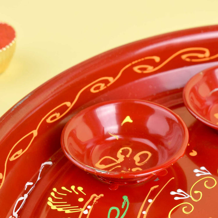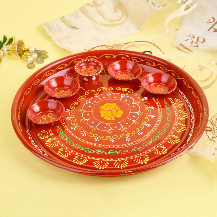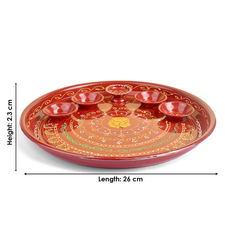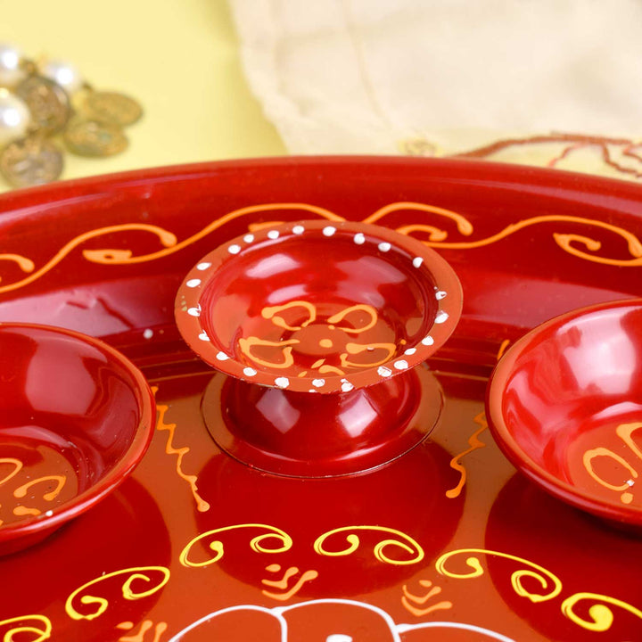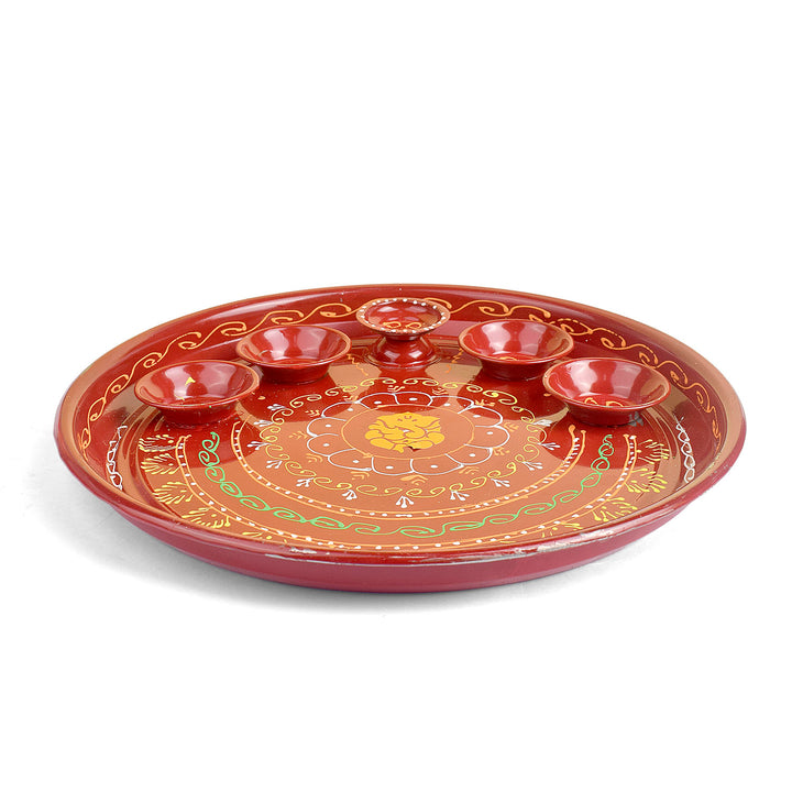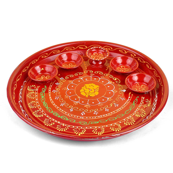 • Package Contains: 1 Pc Puja Thali Set (Thali, Incense Holder, Diya, Bowl)