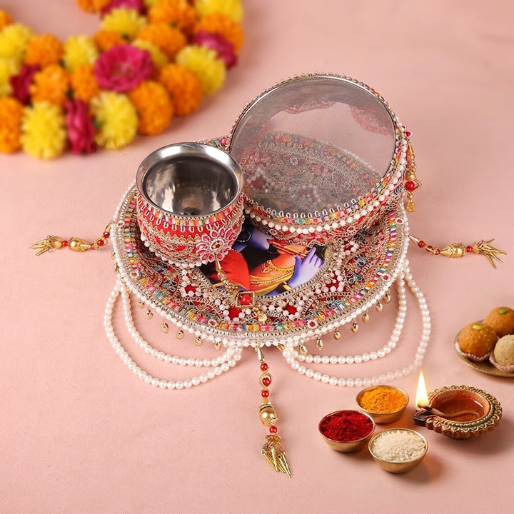 Key Features of this Designer Karwa Chauth Thali Set: