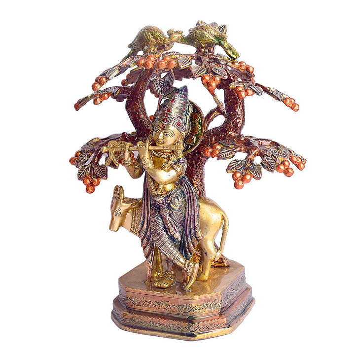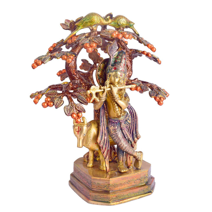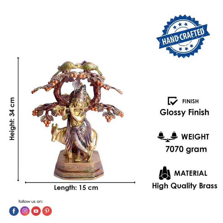 • Item Name: 13.4 Inch Pure Brass Krishna with Cow Under Tree Statue