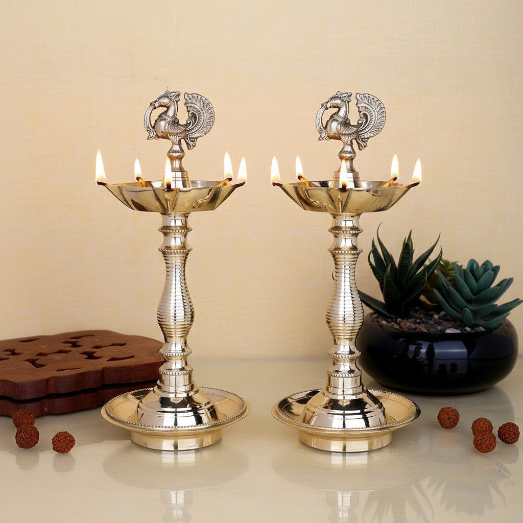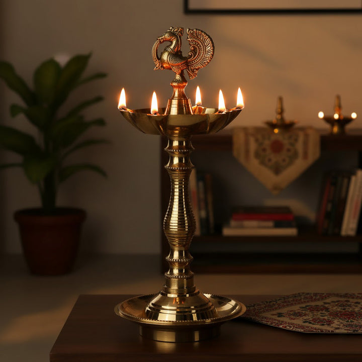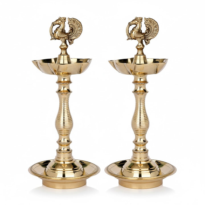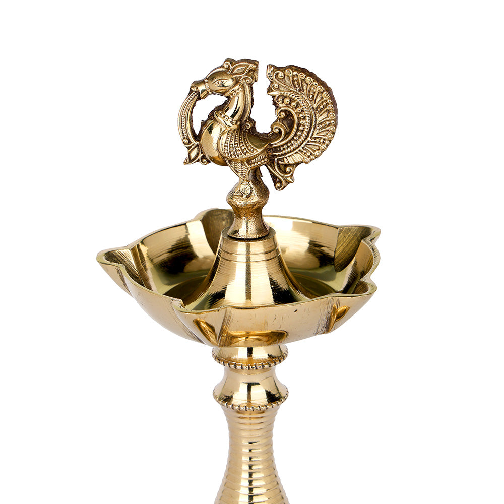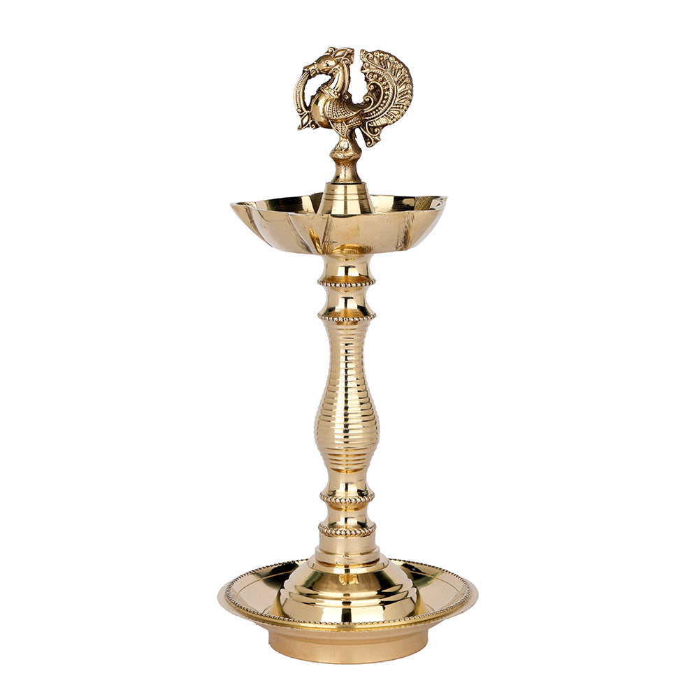 Buy 9.2 Inch Pure Brass Peacock Kerala Diya | Satvikstore.in – satvikstore.in