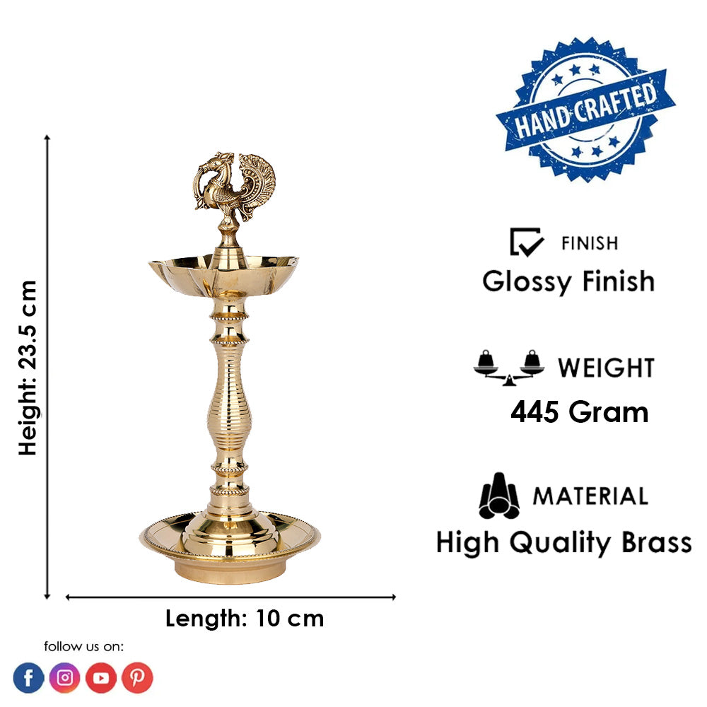 • Item Name:  9.2 Inch Pure Brass Peacock Kerala Diya