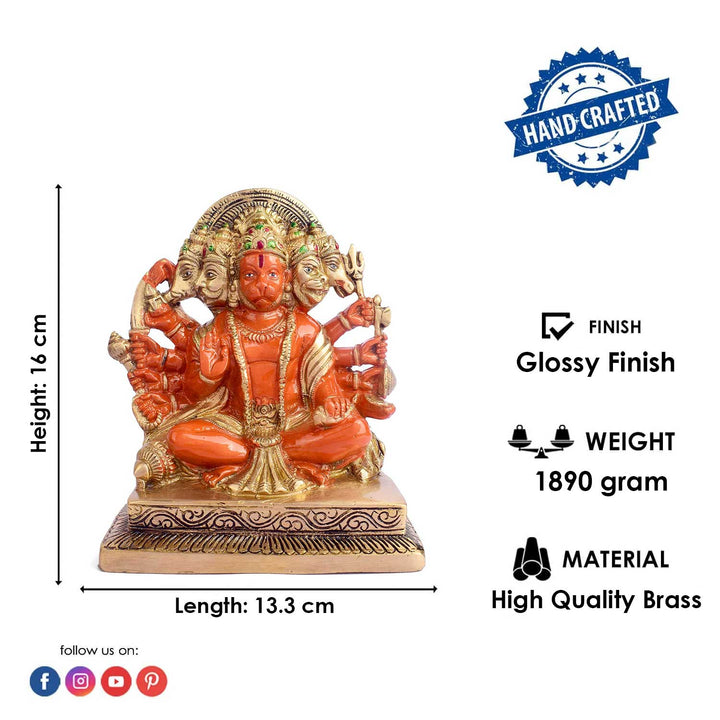 • Item Name: 6.3 Inch Panchmukhi Kesari Nandan Hanuman Brass Idol