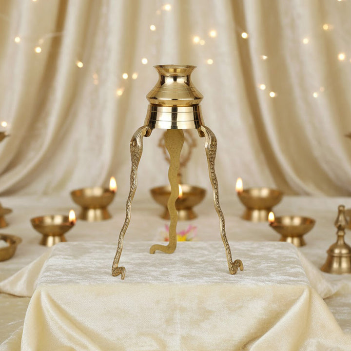 The sturdy and traditional design ensures stability during daily pooja and special ceremonies. Brass is considered auspicious in Hindu worship, known for its durability and spiritual purity, making this stand ideal for long-term devotional use. It is perfectly suited for home temples, pooja rooms, and religious ceremonies, especially during Maha Shivratri and other Shiva-related rituals.