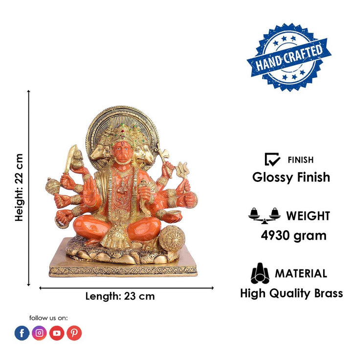 • Item Name: 8.7 Inch Brass Kesari Panchmukhi  Hanuman Big Sitting Idol