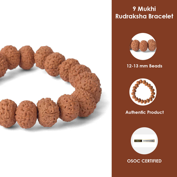 • Material  Natural 9 Mukhi Rudraksha Beads Bracelet with Durable Elastic Thread