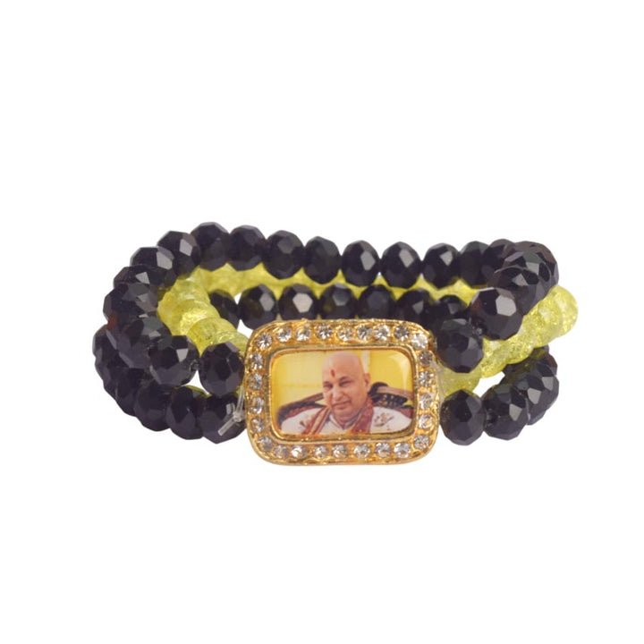 black neon yellow guruji bracelet | triple layer bracelet | black beads bracelet | neon yellow beads bracelet | bold guruji swaroop bracelet | stylish daily wear bracelet | guruji bracelet for men and women | spiritual bracelet india | jai guruji bracelet | handmade spiritual jewellery | pooja return gift | satvikstore bracelet | vibrant spiritual jewellery | multi layer guruji bracelet | electric spiritual accessory | graceful guruji bracelet | india spiritual brand