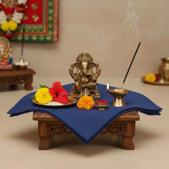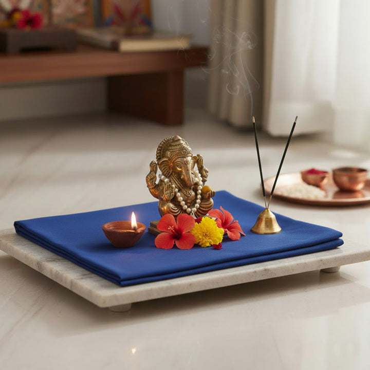 Blue Pooja Cloth | 1.25 Meter Blue Cotton Fabric | Devotional Blue Cloth | Sacred Cloth for Puja | Altar Decoration Fabric | Blue Ritual Cloth | Pooja Essentials | Cotton Fabric for Worship | Cloth for Deity Wrapping