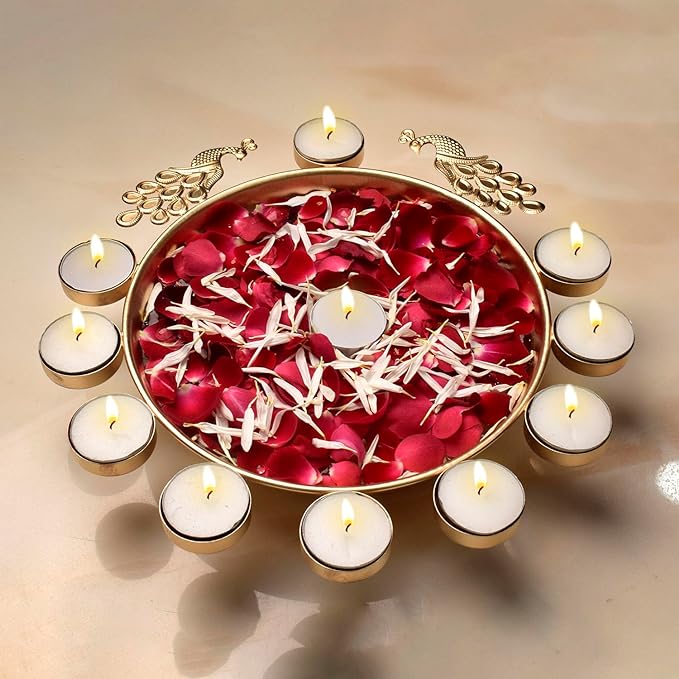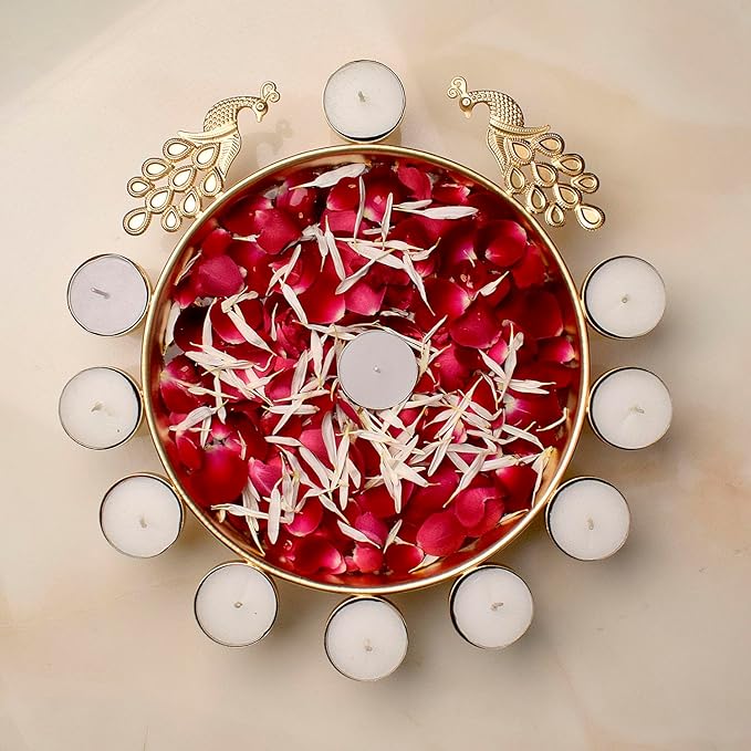 Shop Metal Peacock Flower Urli with Tea Light (Pack of 3) | Satvik – satvikstore.in