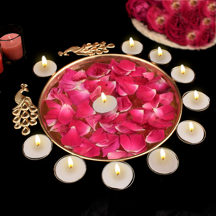 Decorative Metal Peacock Flower Urli with Tea Light (Pack of 3)