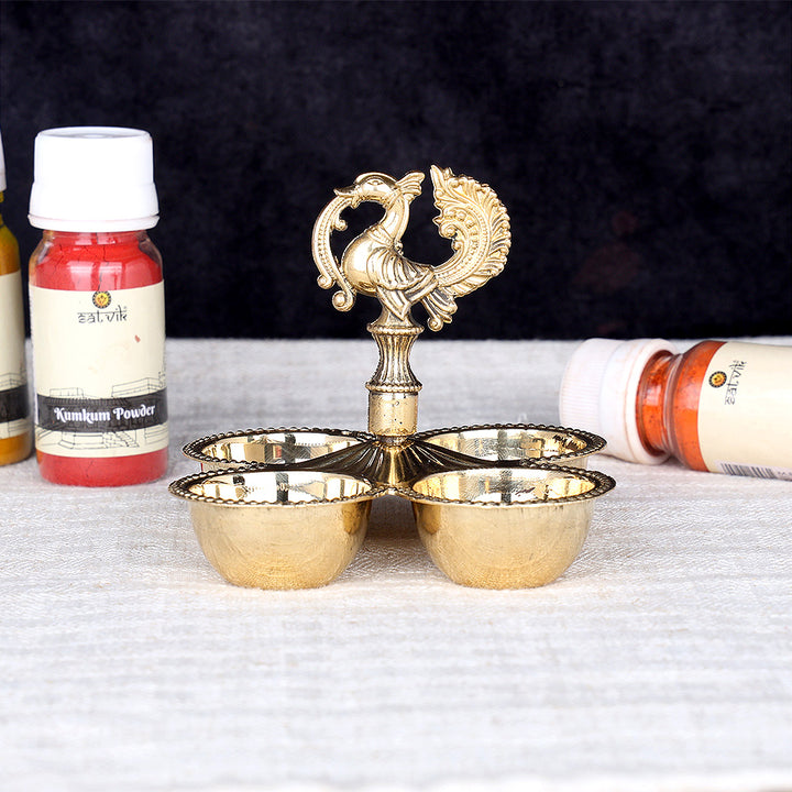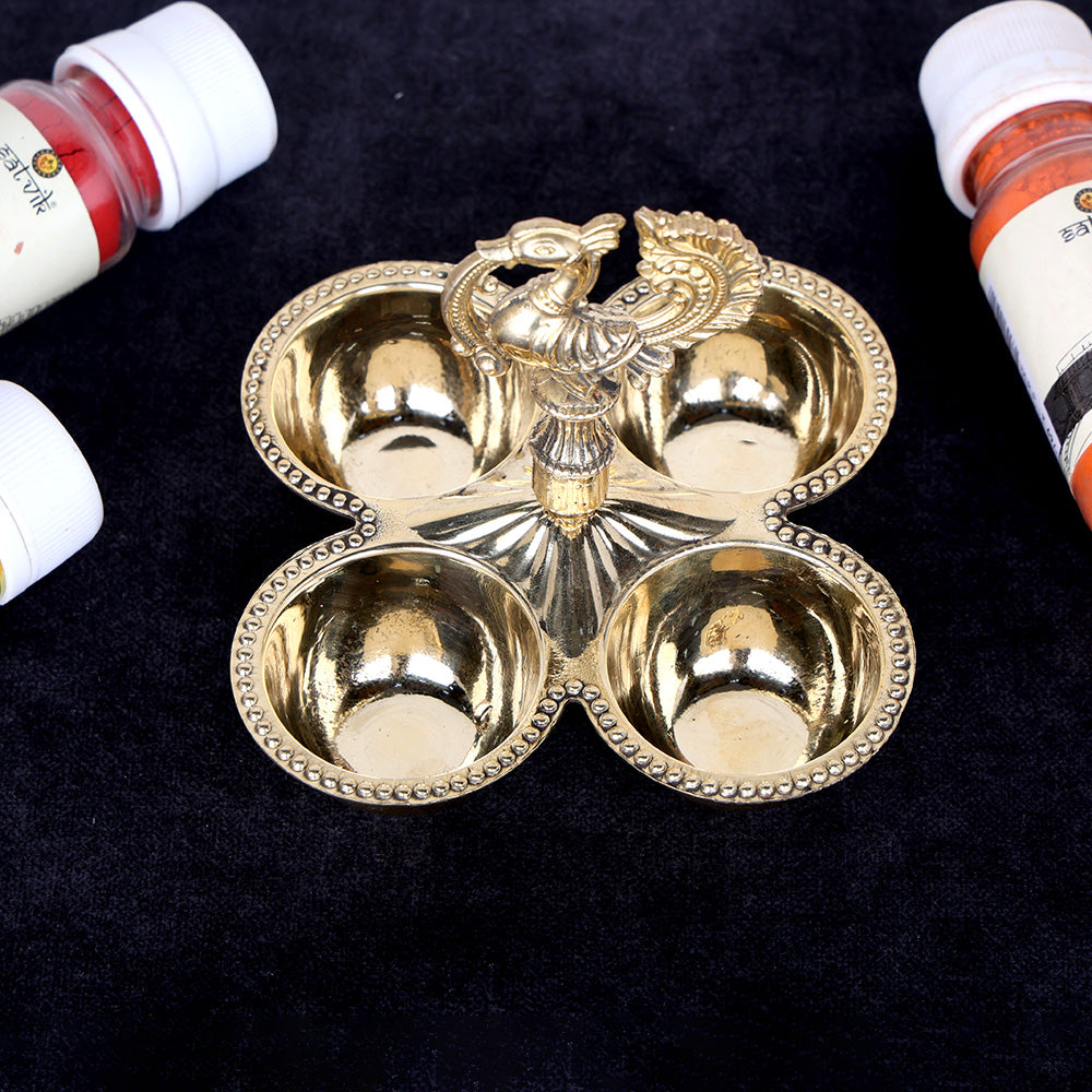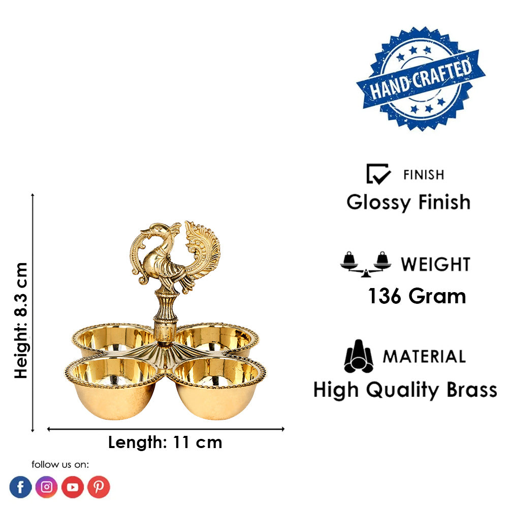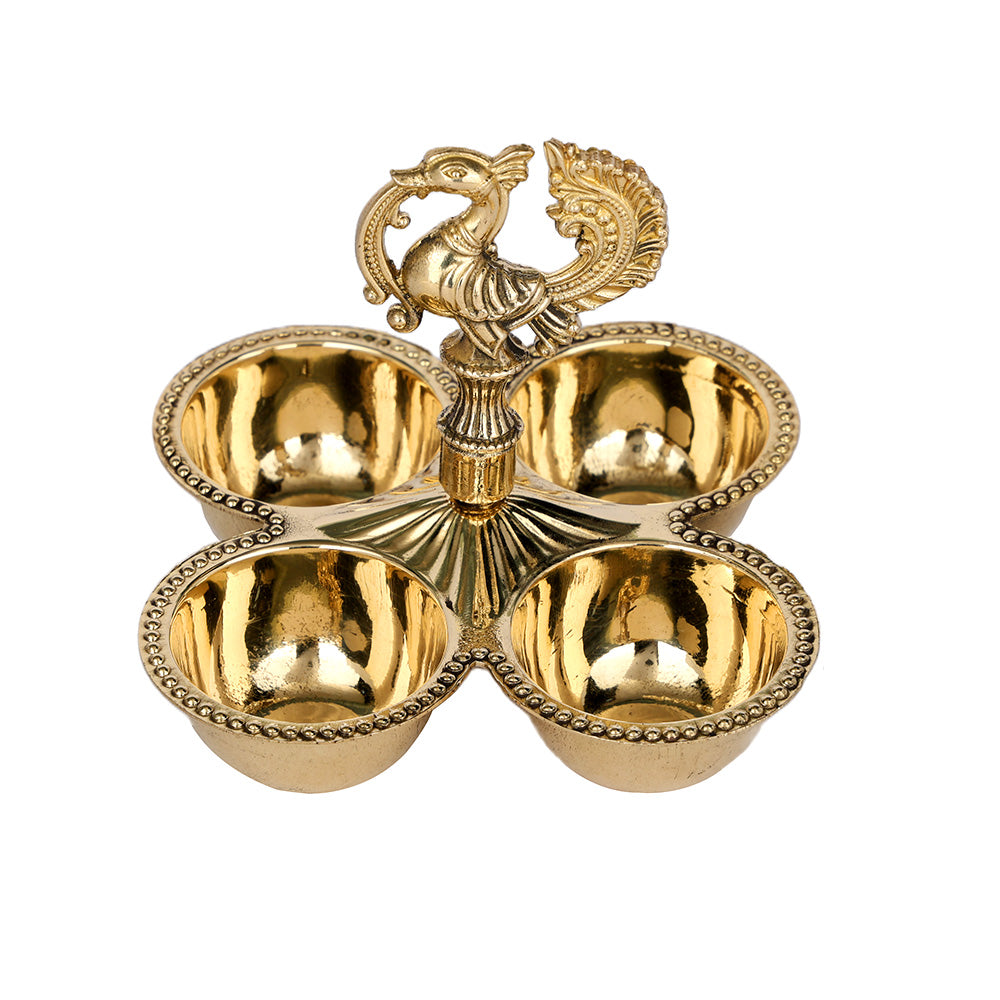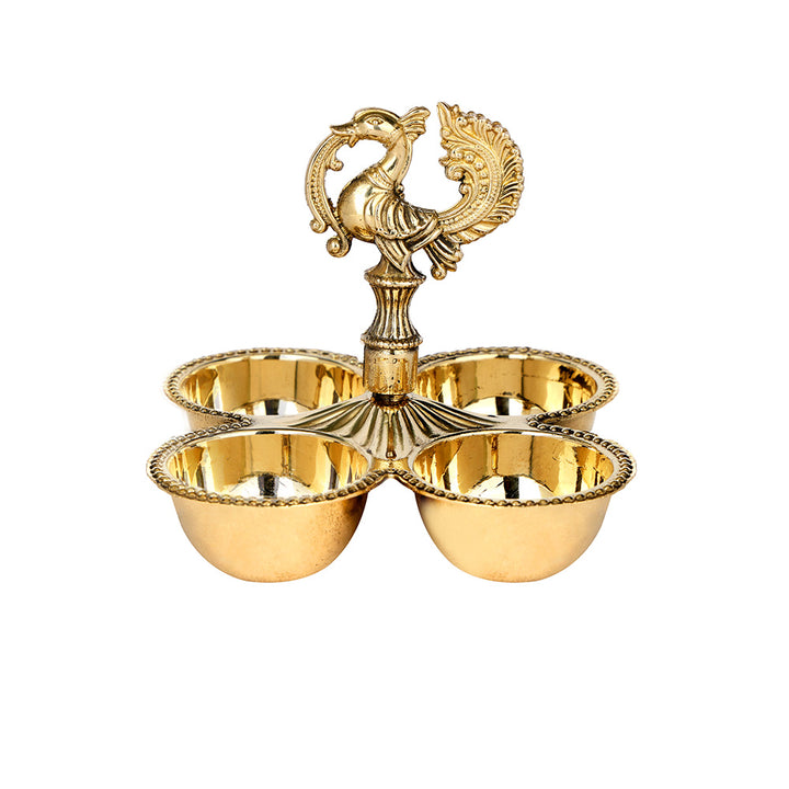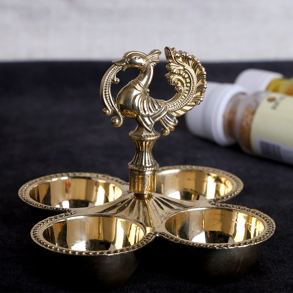 Brass Chaumukh | Peacock Brass Chowmukh | Designer Brass Chowmukh | Brass Pooja Accessory | Brass Pooja Lamp | Brass Chaumukh for Home Mandir | Peacock Design Brass Chowmukh | Traditional Brass Chowmukh | Handcrafted Brass Chaumukh | Nilavilakku Style Chowmukh | Kerala Style Brass Chaumukh