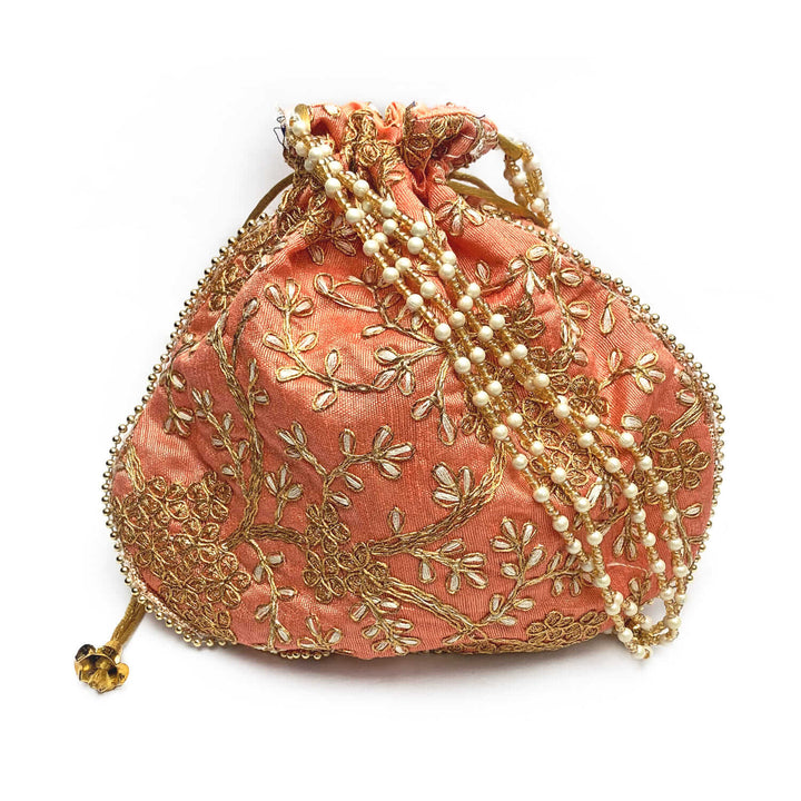 • Material: Made from High quality Fabric with Zari Work All over the Pouch, Perfectly Stitched Wedding Pouch.
