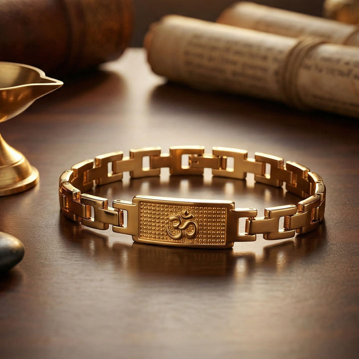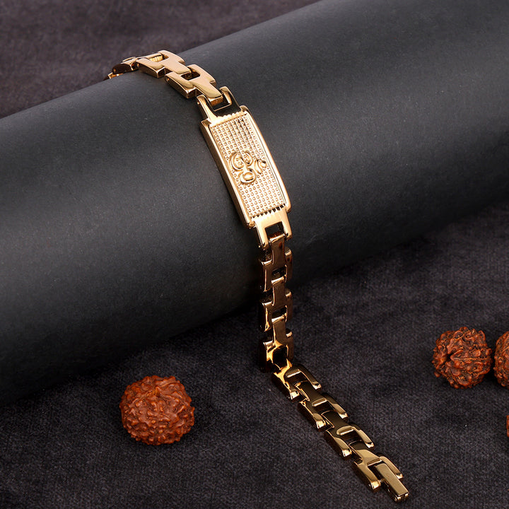 Gold Plated Om Bracelet Beautiful | Om Symbol Bracelet | IGP Gold Om Bracelet | Spiritual Om Bracelet | Om Bracelet for Men and Women | Adjustable Om Bracelet | Sacred Om Jewelry | Gold Om Hand Bracelet | Spiritual Fashion Bracelet | Om Bracelet for Daily Wear