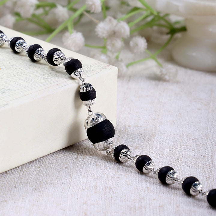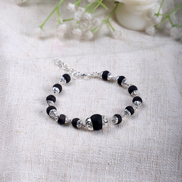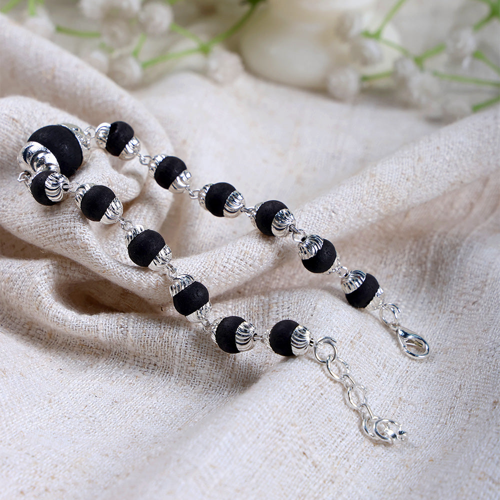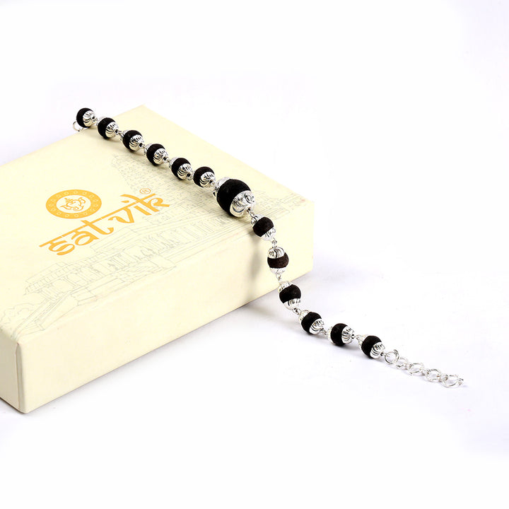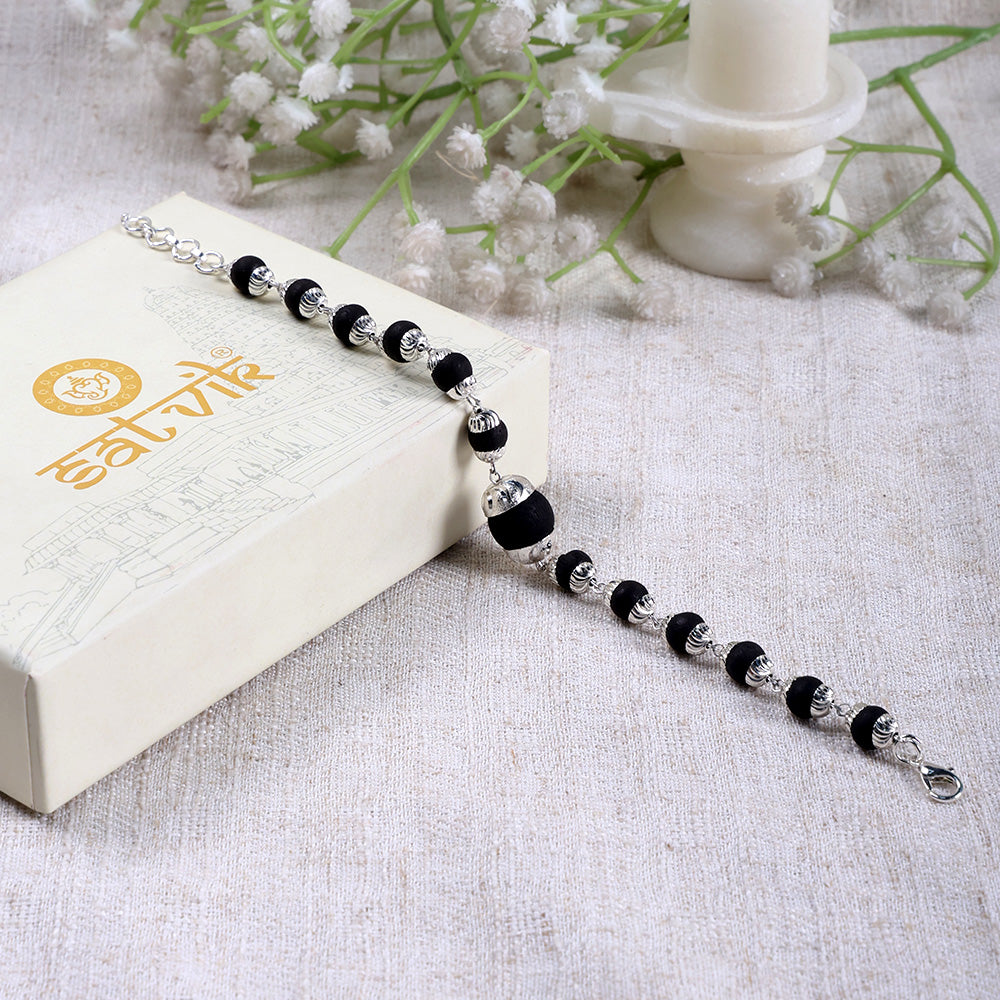 Buy Silver Plated Karungali Bracelet with Big Bead | Satvikstore.in – satvikstore.in