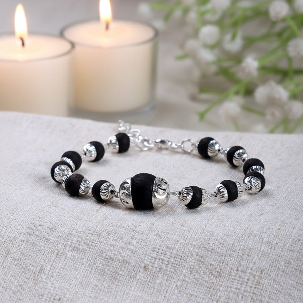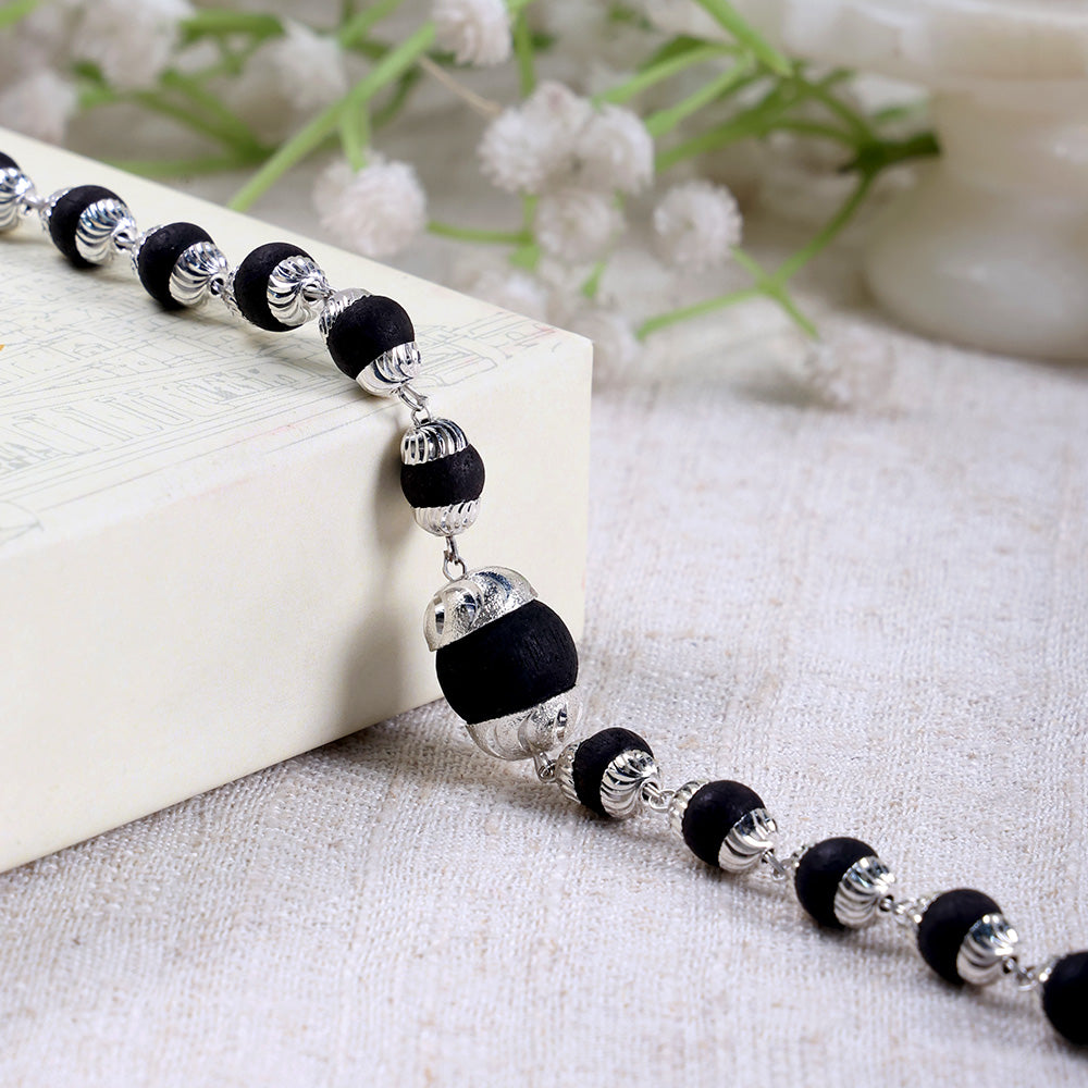 Silver Plated Karungali Bracelet | Karungali Bracelet with Big Bead | Ebony Wood Bracelet | Spiritual Protection Bracelet | Karungali Bracelet for Men | Karungali Bracelet for Women | Authentic Karungali Bracelet | Meditation Bracelet | Karungali Big Bead Bracelet | Protective Spiritual Jewelry