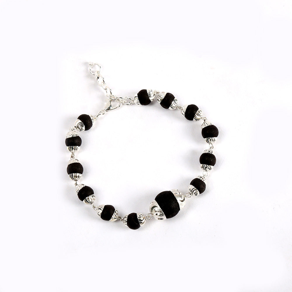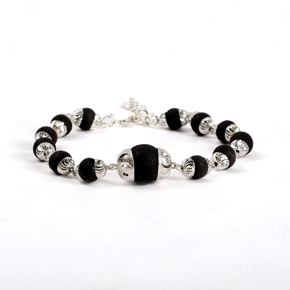 Govt. Certified 8mm Silver Plated Karungali Bracelet with Big Karungali Bead