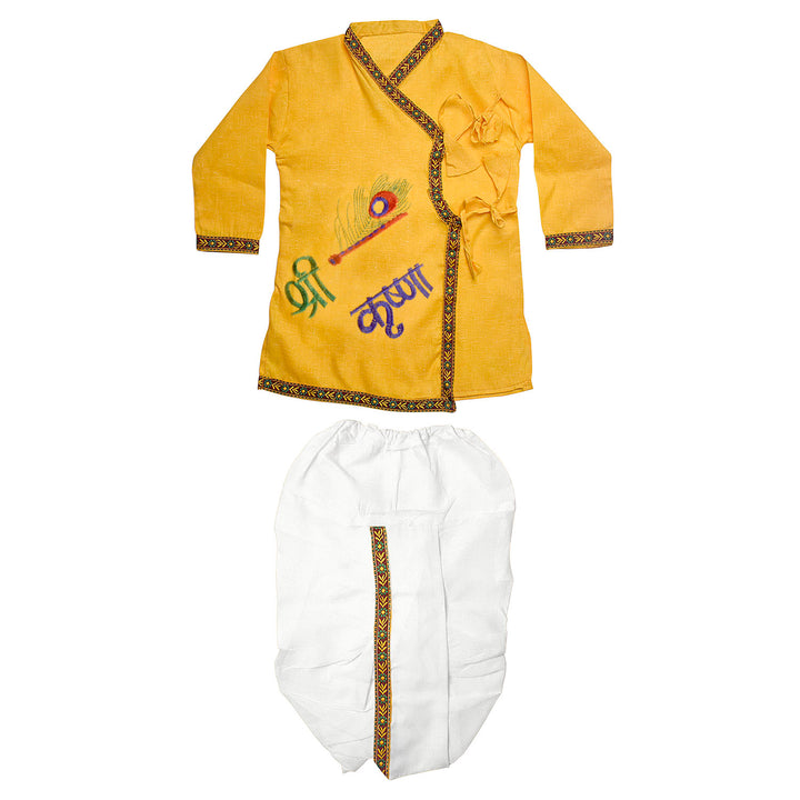 Krishana Outfit Yellow Kurta with White Dhoti for Janmasthmi