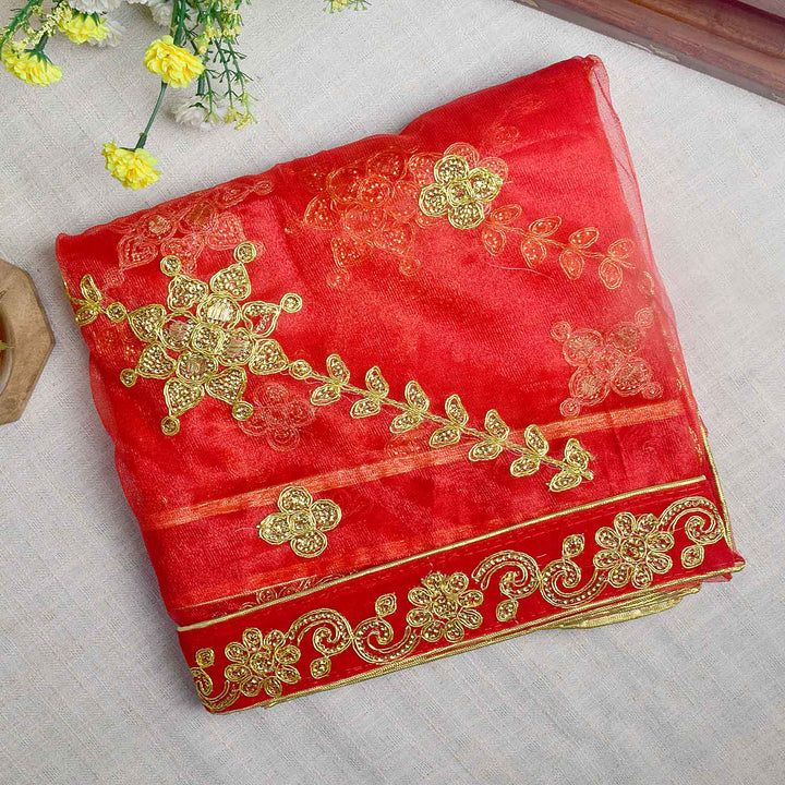 Luxurious Mata chunri | 86x41 inch pooja cloth | premium festive vastra | embellished deity dupatta | Navratri pooja accessory | temple decoration fabric | sacred idol covering | devotional pooja cloth | elegant red chunni | luxurious pooja fabric