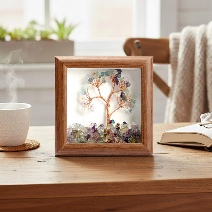 Multi Fluorite Tree Frame | Fluorite Crystal Tree with Frame | Healing Stone Decor | Spiritual Home Decor | Energy Cleansing Frame | Focus and Clarity Decor
